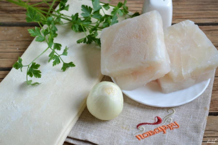 Подготовьте все необходимые ингредиенты. Слоеное бездрожжевое тесто заранее выньте из морозилки и дайте ему слегка подтаять, чтобы его легко можно было раскатать.