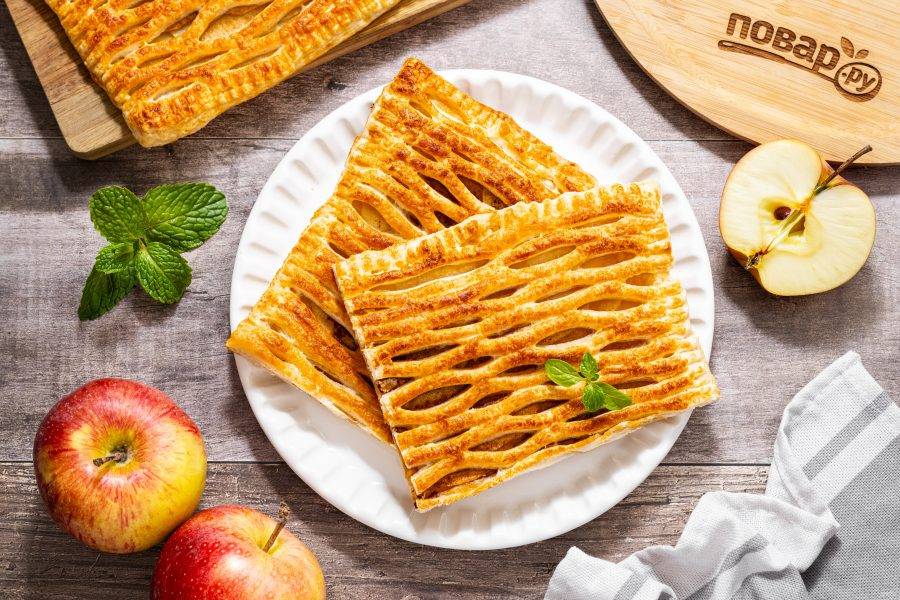 Делюсь рецептом яблочного пирога из слоеного теста. Он получается румяным, хрустящим, с сочной ароматной начинкой из яблок. Готовится слоеный пирог быстро и просто!