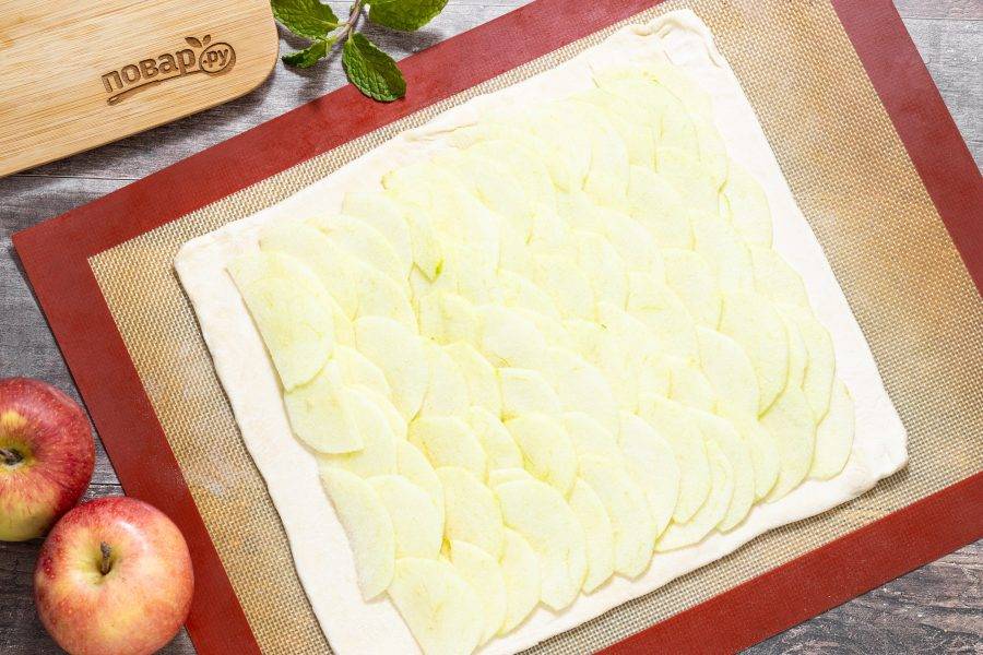 Выложите яблоки так, чтобы ломтики немного заходили друг на друга.