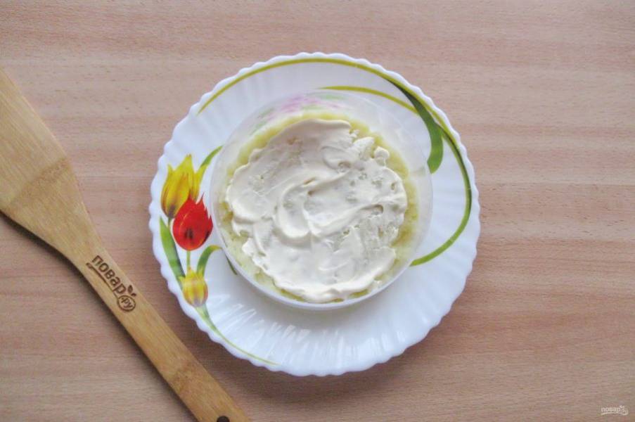 Смажьте майонезом.