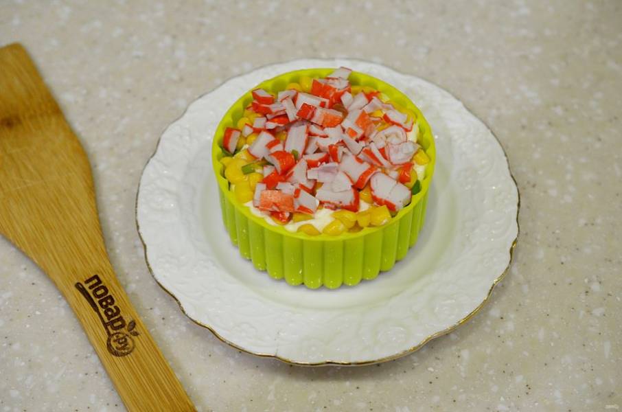 Из обычных продуктов, быстро и просто, получается нежный и очень вкусный салат! В нем не используется ни рис, ни картофель, только крабовые палочки, кукуруза, яйца и сыр.