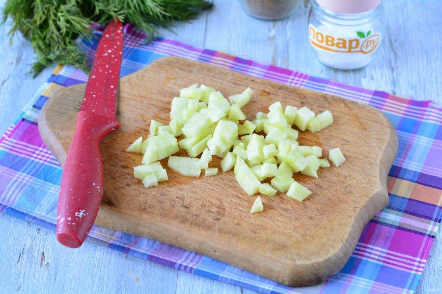 Почистите яблоки от кожуры, нарежьте небольшими кубиками.