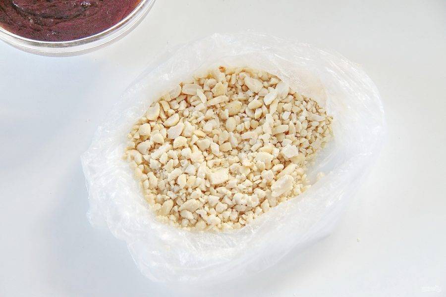 3. Орехи измельчите любым удобным способом, но не до состояния крошки, желательно, чтобы оставались цельные кусочки.