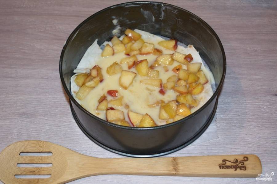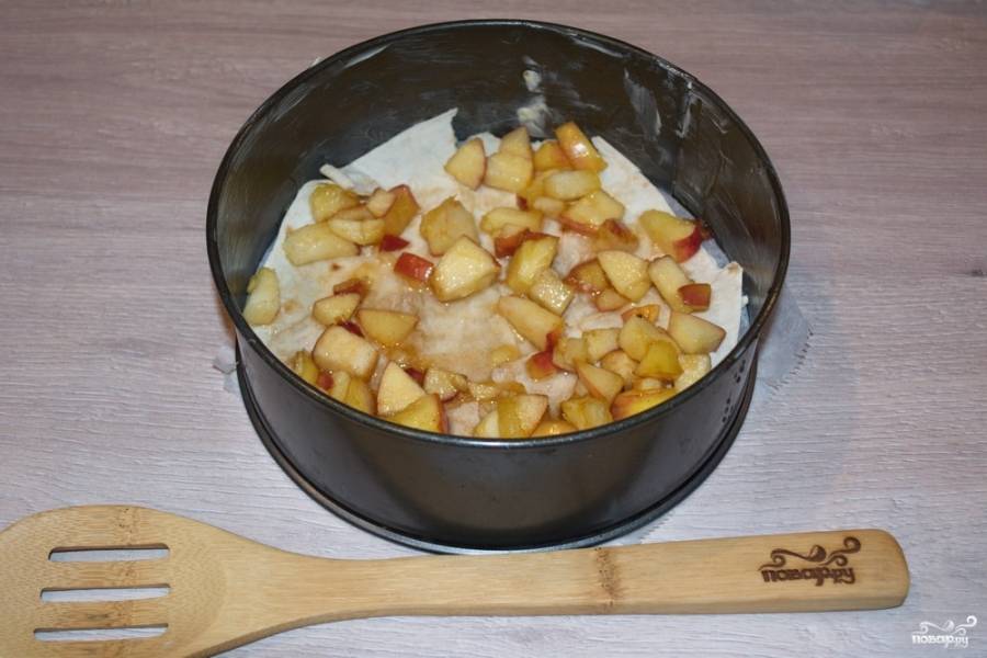 Выложите часть яблок. Распределите яблоки по лавашу.