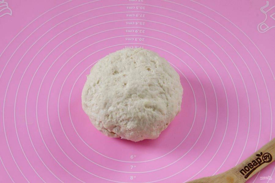 Замесите тесто. Если необходимо, то добавьте еще немного муки. Тесто не должно липнуть к рукам, но должно оставаться мягким и пластичным. Соберите его в шар, заверните в пищевую пленку и уберите в холодильник на 1 час.