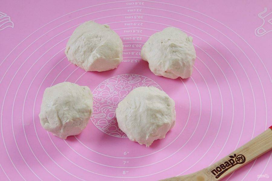 По истечении часа достаньте тесто из холодильника и разделите его на 4 части.