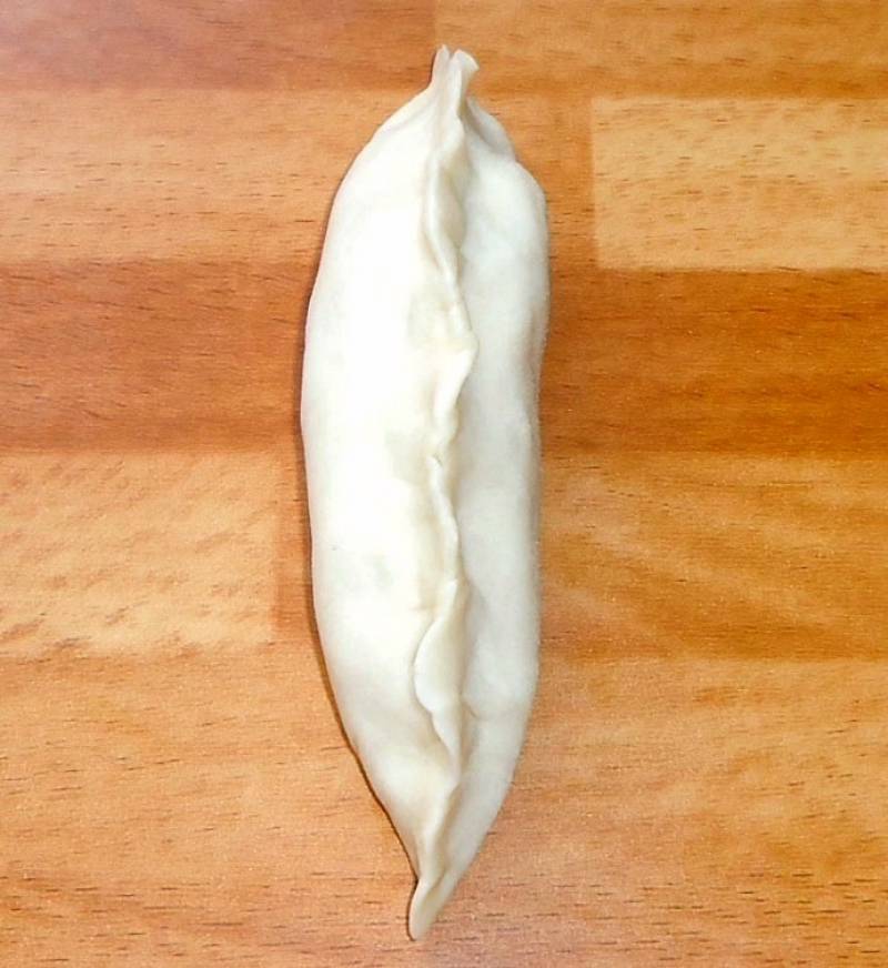 Соединить и защипнуть края теста. Получился пирожок. Таким образом сформировать остальные пирожки.