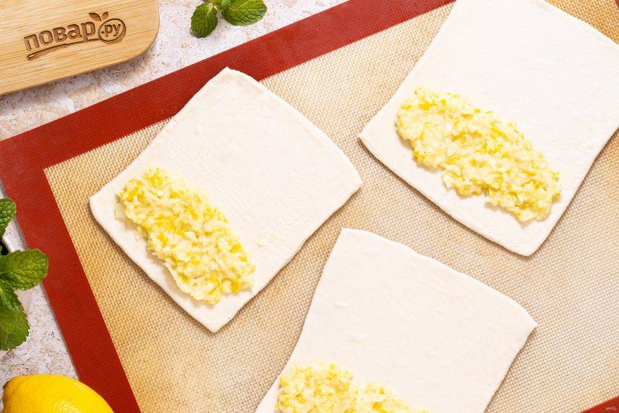 На один край выложите начинку из лимонов.