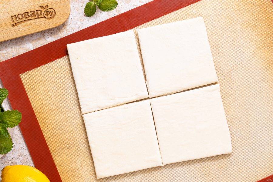 Лист теста разделите на 4-6 частей. Каждую раскатайте в прямоугольник толщиной примерно 5 мм.