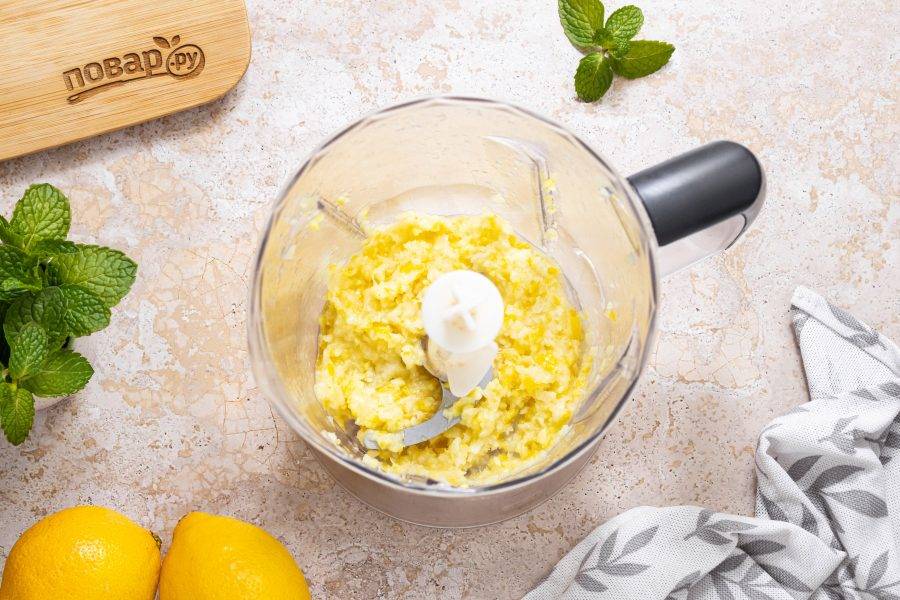 Измельчите в блендере лимон с сахаром до консистенции пюре.