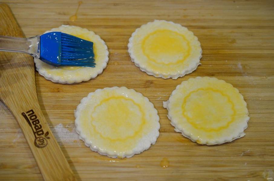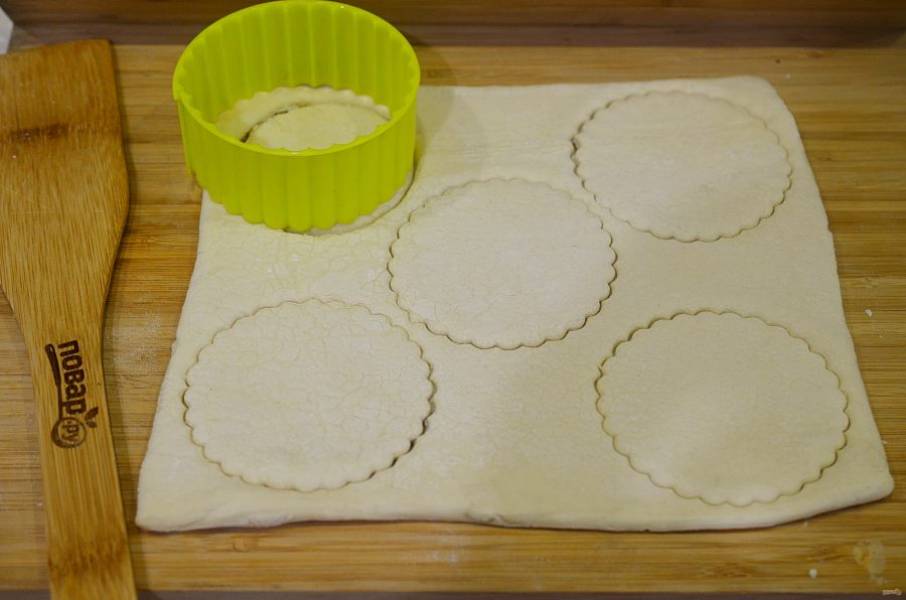 1. Тесто разморозьте, раскатайте, вырежьте круги.