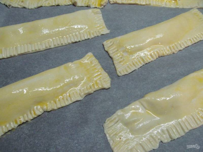 Кладем на противень, смазываем оставшимся желтком и отправляем в разогретую духовку до 200 градусов. Выпекаем до румяной корочки примерно 20-25 минут.