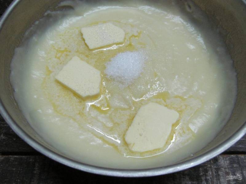 Снимаем с огня, добавляем масло и ванильный сахар и, перемешивая, ждем когда растопится масло.
