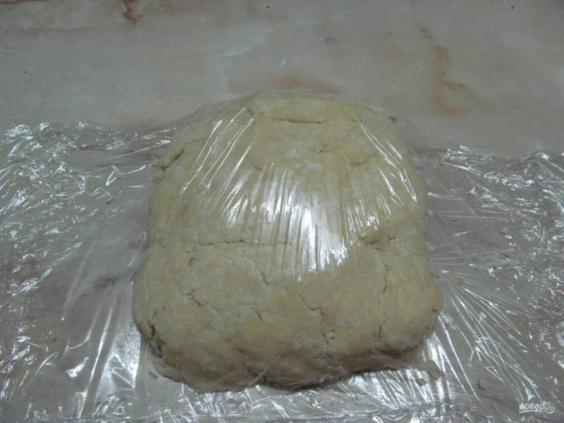 Придаем тесту прямоугольную форму и заворачиваем в пищевую пленку. Отправить в холодильник минимум на 2 часа. В идеале тесто лучше выдержать в холодильнике 10-12 часов.