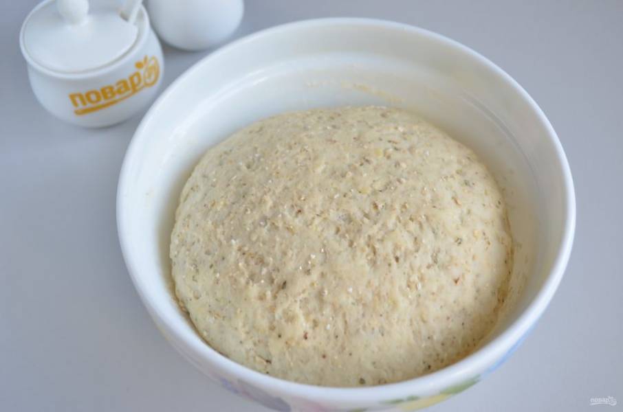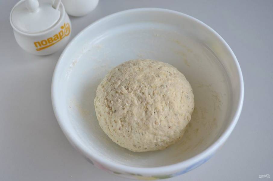 5. Цвет теста может отличатся от моего, тут важен сорт и вид отрубей, именно они будут придавать цвет. Тесто замешивается очень легко, больше муки не добавляйте. Накройте чистой и сухой салфеткой и поставьте в теплое место на 1 час.