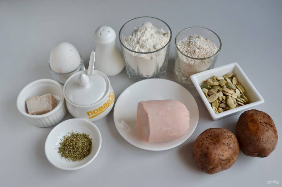 Сегодня предлагаю попробовать интересные булочки, они на дрожжевом тесте с отварным картофелем и отрубями, есть включения ветчины и тыквенных семечек. Ароматно, сытно, вкусно!