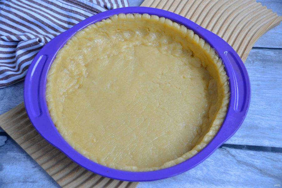 Перенесите тесто в форму, сформуйте бортики высотой 3-4 см.