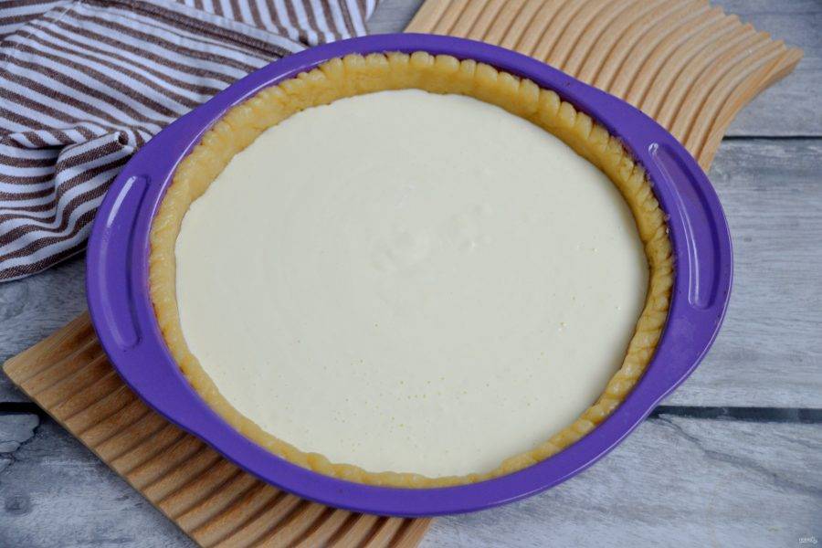 Вылейте сметанную начинку в форму.