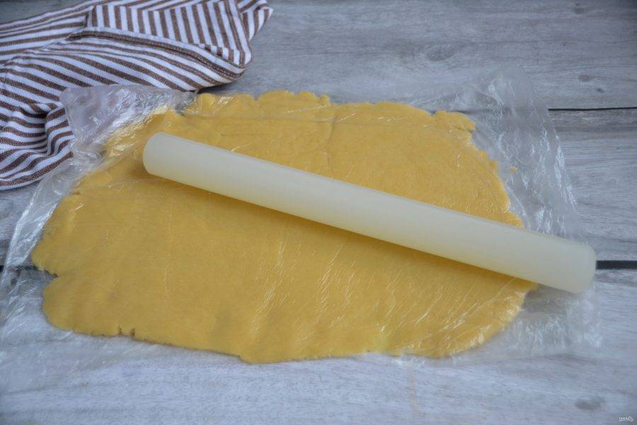 Раскатайте тесто в пласт. Лайфхак, тесто удобно раскатывать прямо в пакете, после чего сделайте разрез и достаньте тесто.