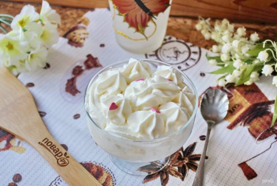 С помощью миксера взбейте крем до пышной, плотной консистенции.