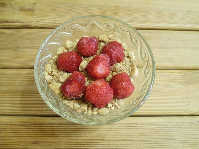 Подготовьте продукты для десерта. В качестве ягодной основы используйте любые ягоды без косточек.