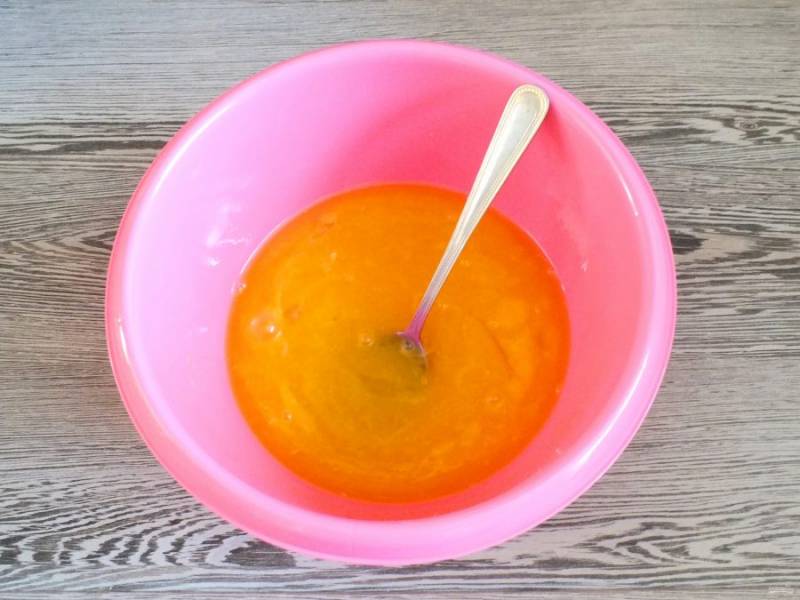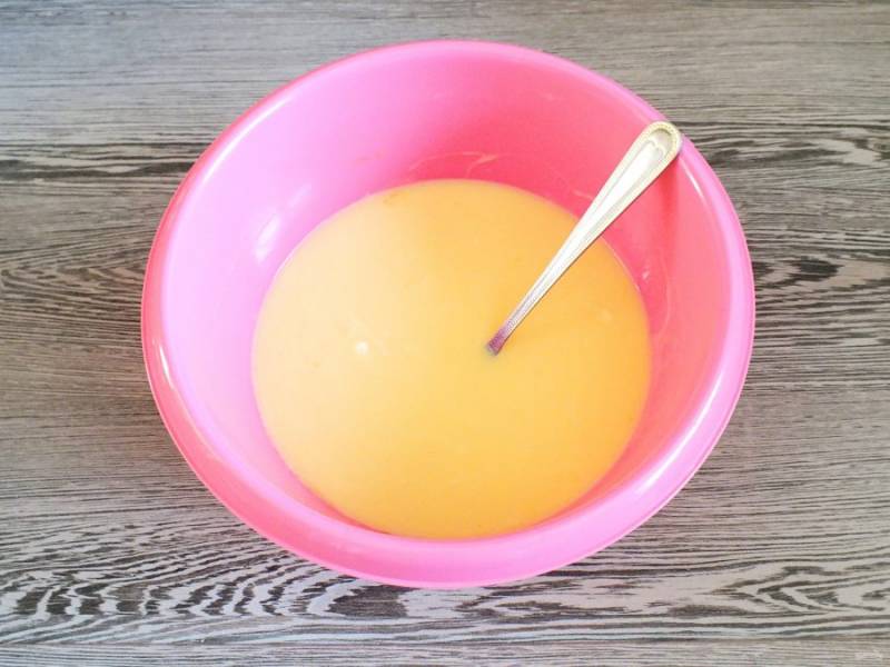 Добавьте яйца по одному. После каждого размешивайте ложкой.
