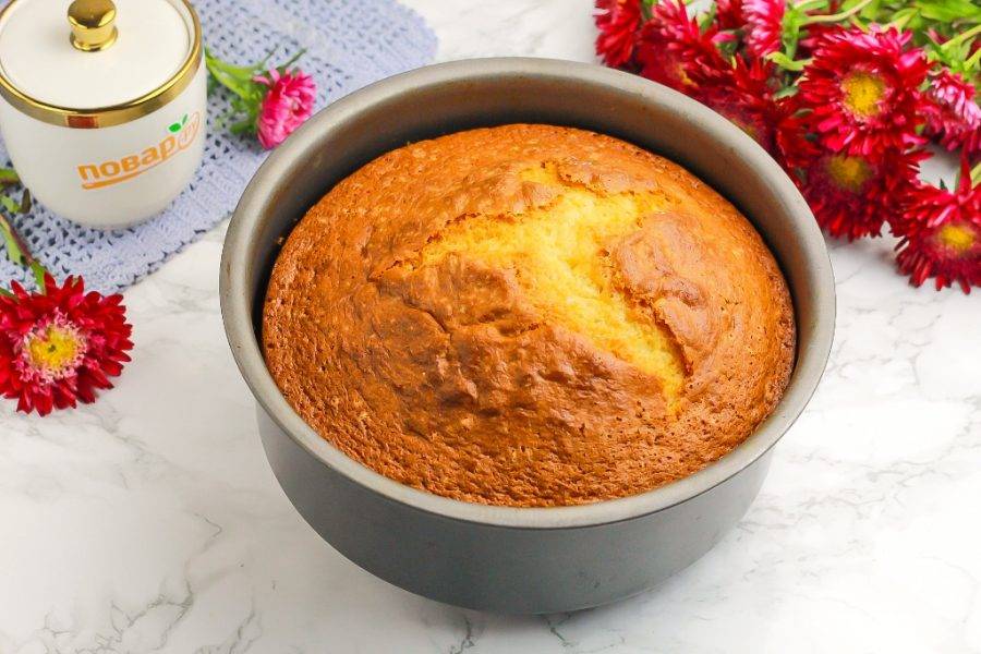 Спустя указанное время проверьте готовность пирога с помощью деревянной шпажки, она должна выходить сухой из его середины. Извлеките выпечку и дайте ей остыть хотя бы 30 минут.