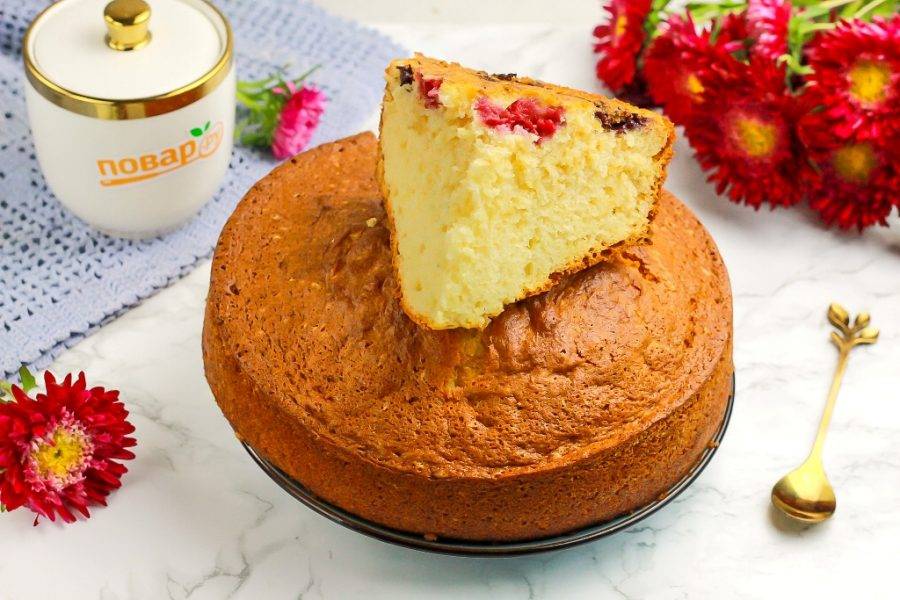 Вы забудете обо всем на свете, дегустируя такой сметанный пирог с ароматным чаем или кофе! Он получается нежнейшим на вкус, пышным и очень аппетитным. Ягоды добавляйте любые по вашему вкусу.