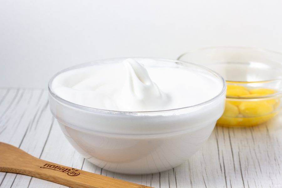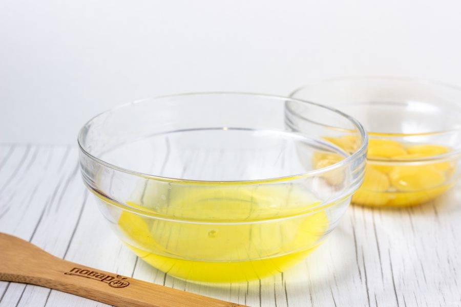 Желтки взбейте со второй половиной сахара до увеличения в объеме.