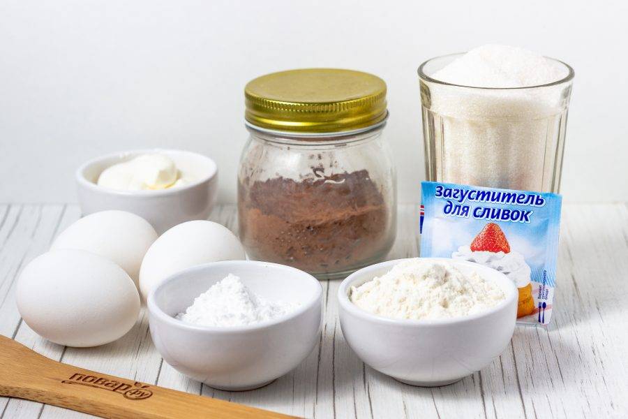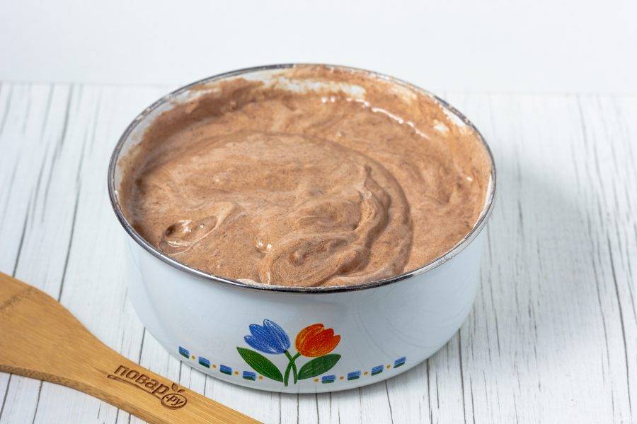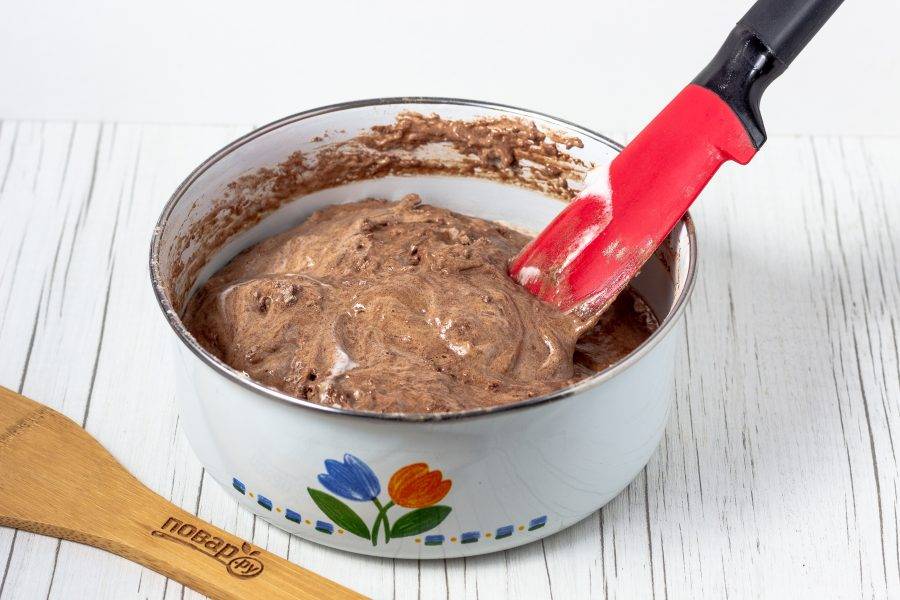 Муку смешайте с какао и разрыхлителем. Просейте.