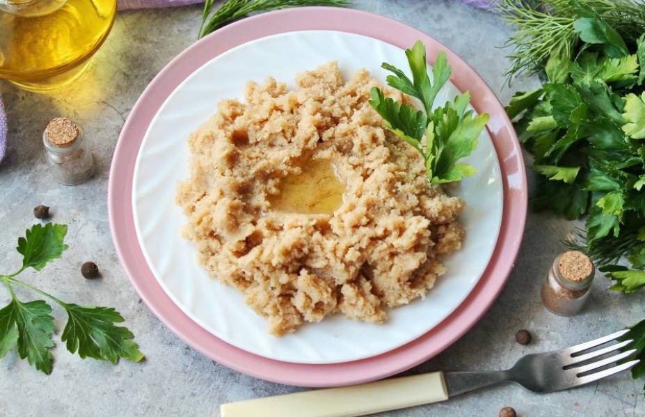 Варите смоленскую кашу, мешая, пока она не станет напоминать мокрый песок. Готовую кашу сразу разложите и подавайте к столу.