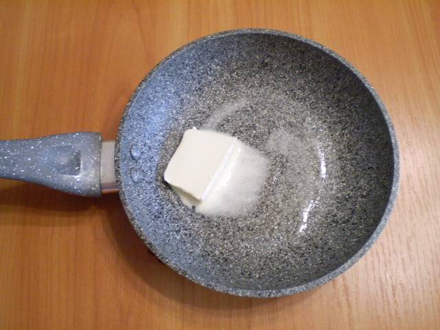 5. Жарим сахар до растворения, постоянно помешивая, чтобы получить легкий карамельный вкус соуса.