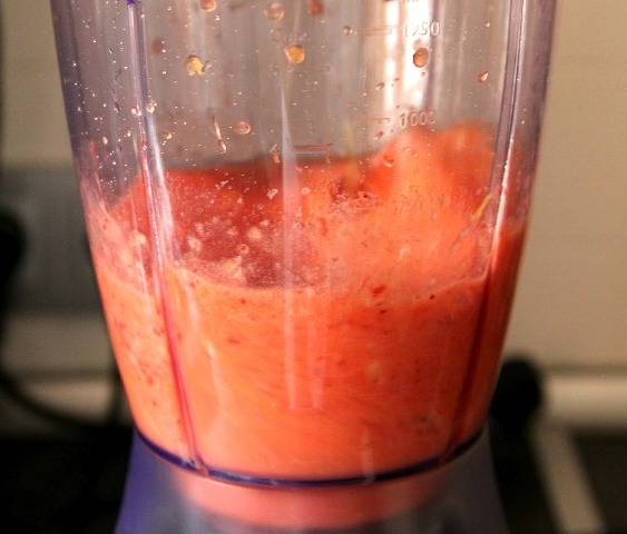 И измельчим до состояния пюре. Пробуем, если смузи оказался слишком кислым - можно добавить ложечку меда и взбить все еще минутку.
