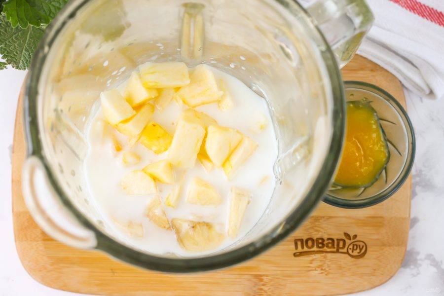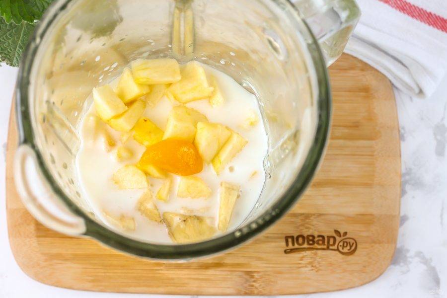 Взбейте все в течение 2-3 минут на пульсирующем режиме техники в однородную массу, чтобы вся фруктовая нарезка как следует измельчилась.