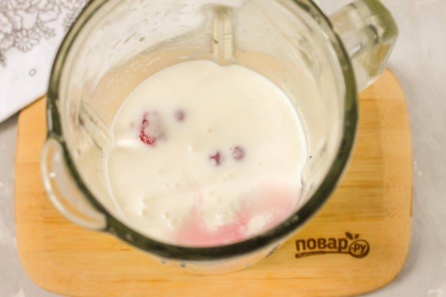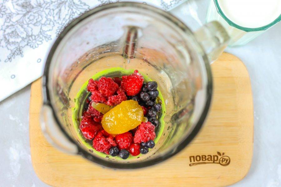 Подготовьте указанные ингредиенты. В зимнее время можно использовать замороженные ягоды, дав им слегка разморозиться перед приготовлением напитка.