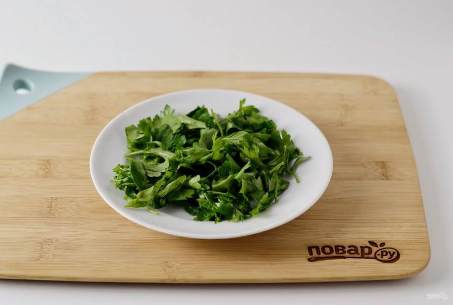 Петрушку помойте, крупно порубите.