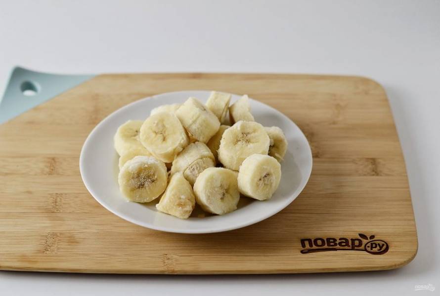 Банан заранее нарежьте кружочками, уберите в морозилку на полчаса.