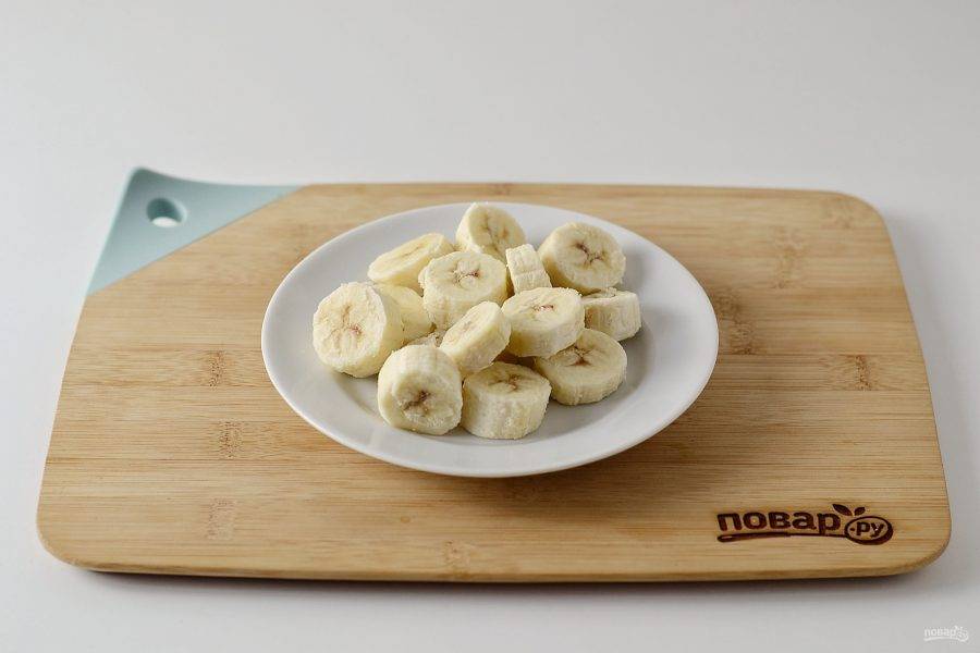 Банан нарежьте кружочками. Уберите в морозилку на полчаса.