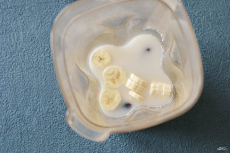 Банан нарежьте кружочками, а из фиников удалите косточки.