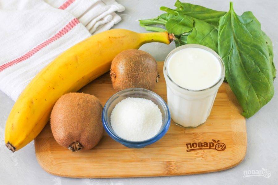Вкусный смузи может быть и полезным, если вы вместе с фруктами измельчите промытые листья шпината, а в качестве основы будете использовать классический йогурт без добавок. Сахар добавляйте по желанию.
