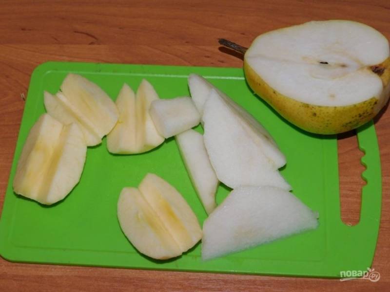 Яблоки и груши очистите от кожуры, удалите сердцевину и нарежьте.