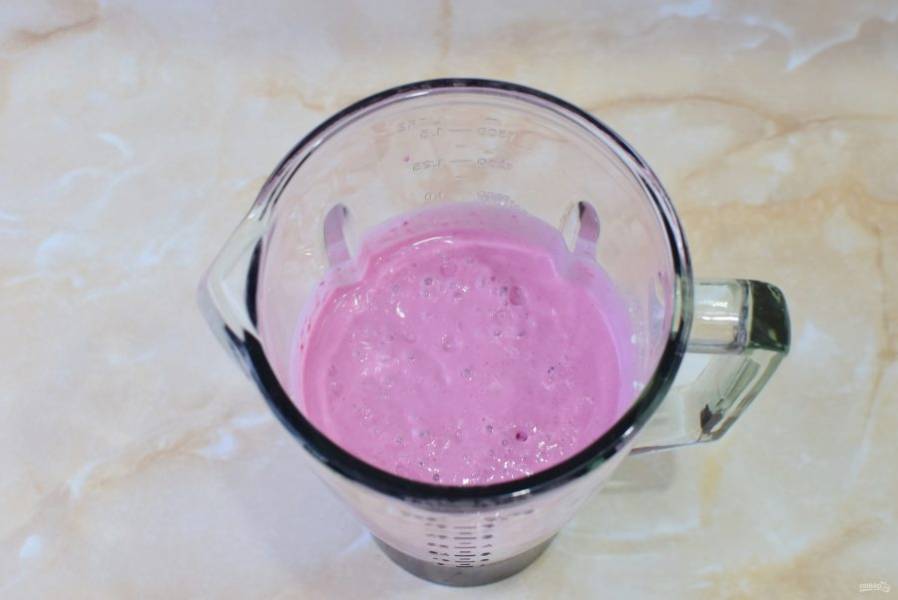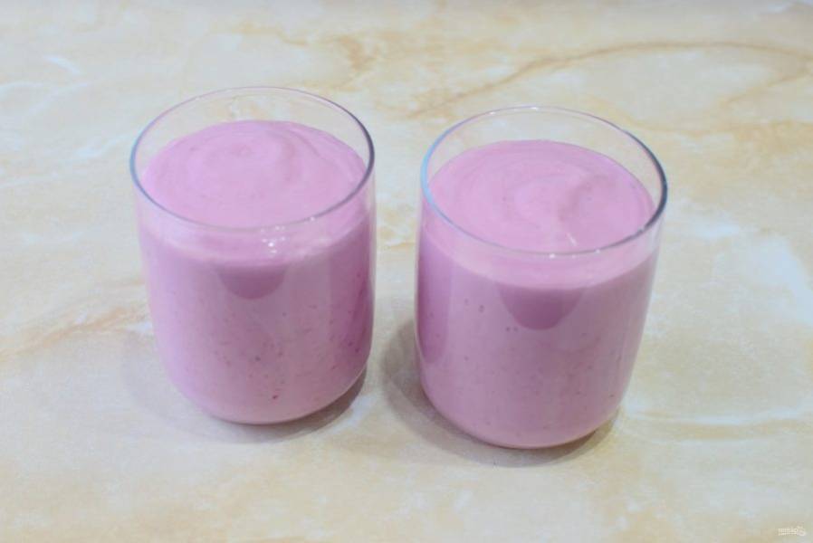На максимальной мощности измельчите все до однородного состояния. Густоту напитка можно отрегулировать добавлением молока.