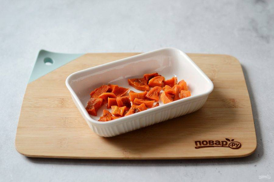 Тыкву нарежьте кубиками и запеките в духовке до мягкости. Затем остудите.