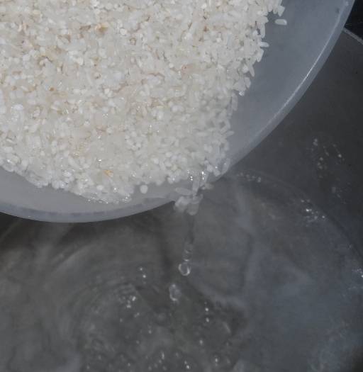 2. Всыпаем в кипящую подсоленную слегка воду рис, перемешиваем и варим его до готовности.