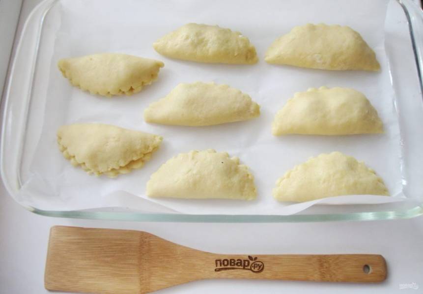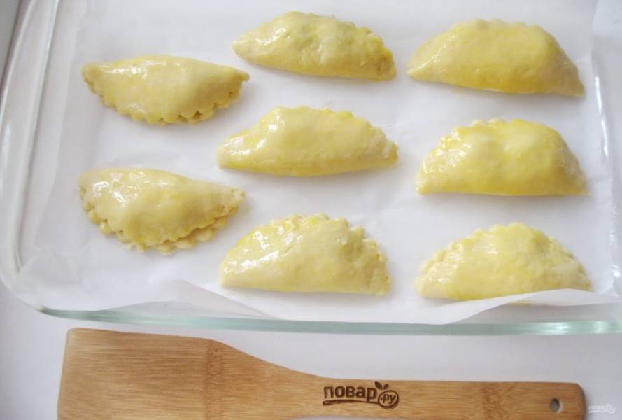 Выложите сочники в форму для выпечки с пекарской бумагой.