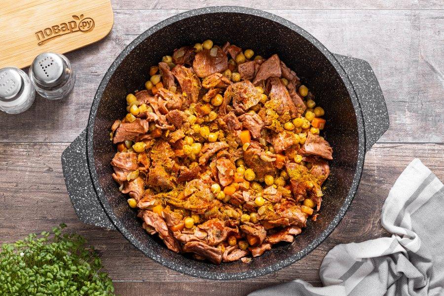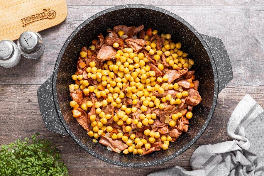 Добавьте нут, перемешайте.