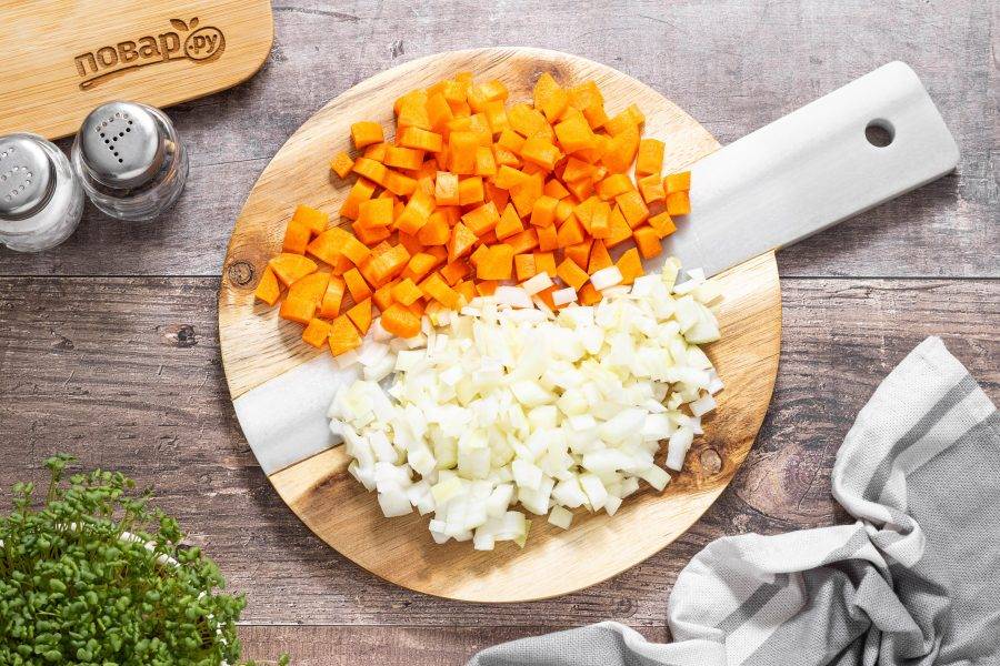 Репчатый лук и морковь нарежьте кубиками.