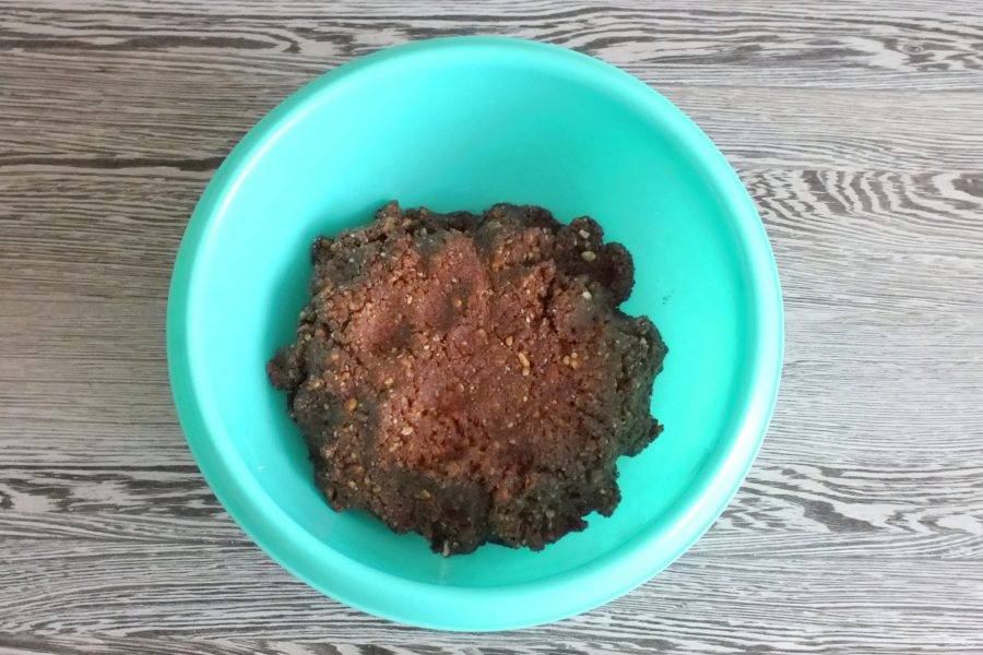 Руками замесите "тесто". Оно получается плотным, но не рассыпчатым.