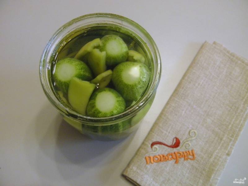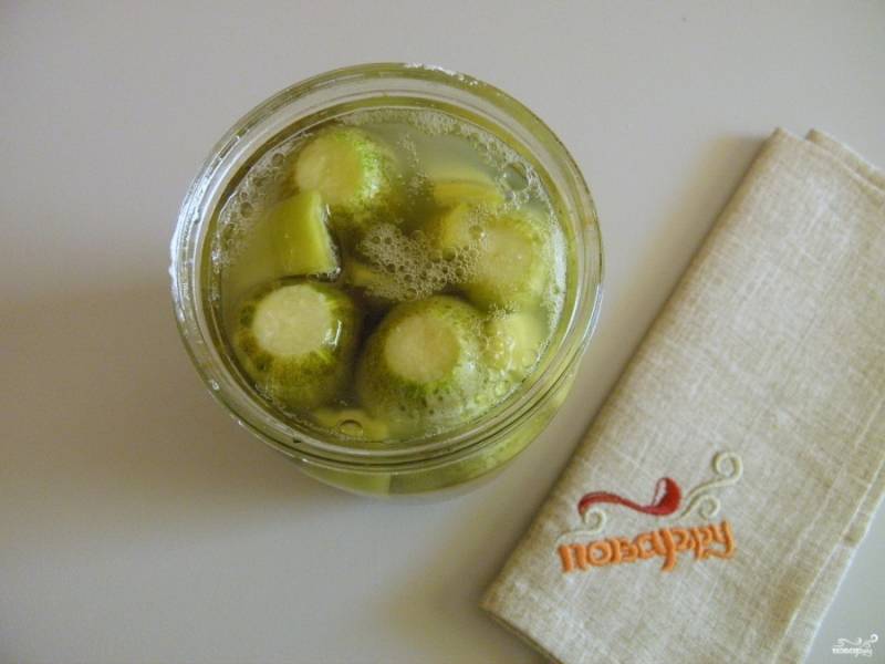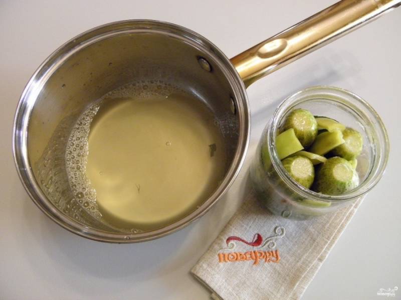 Через 2-3 дня образуется пенка, значит огурчики готовы к консервированию.