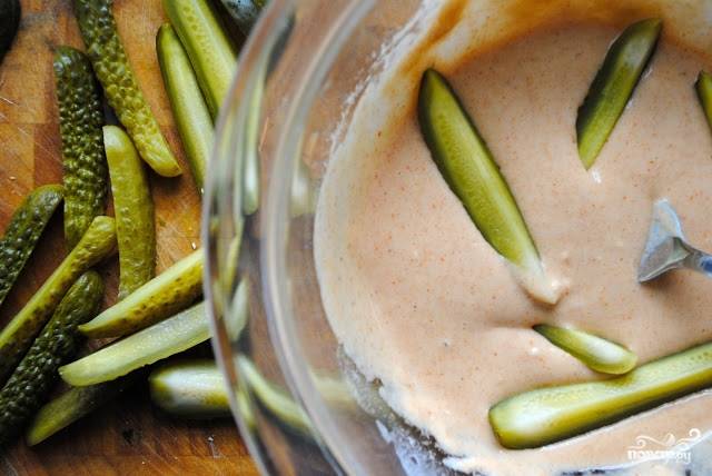 Я уже и не помню, кто угощал меня солеными огурцами в кляре. Но рецептик задержался и изредка, на веселую вечеринку я делаю гурманские блюда. Говорят, в Америке огурцы в кляре есть во многих барах.